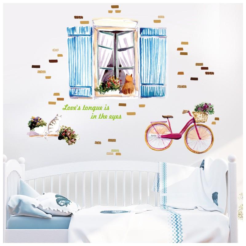 Club Forest ウォールステッカー ウォールシール イラスト風 ネコ 猫 お花 フラワー 窓辺 窓際 可愛い だまし絵 トリックアート 3d 立体的 壁シール 壁紙シール 壁面装飾 壁装飾 室内装飾 インテリア Diy 子供部屋 リビング 寝室 ナチュラル